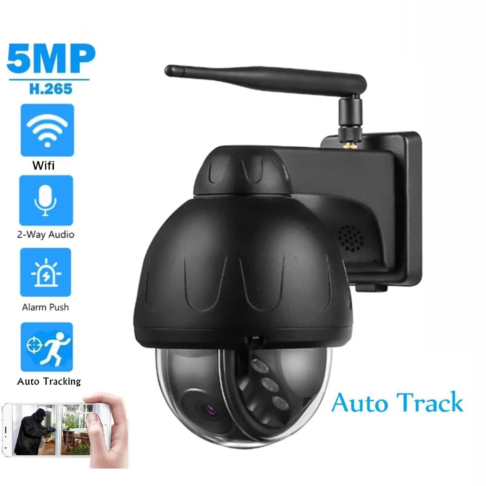 Bosesh SD19SO 5MP Wifi Camera IP Dome Filature etanche Sans Fil IR Vision Nocturne WiFi CCTV Microphone Haut-Parleur Audio Talk Carte SD Blanc Noir – Noir Prise americaine