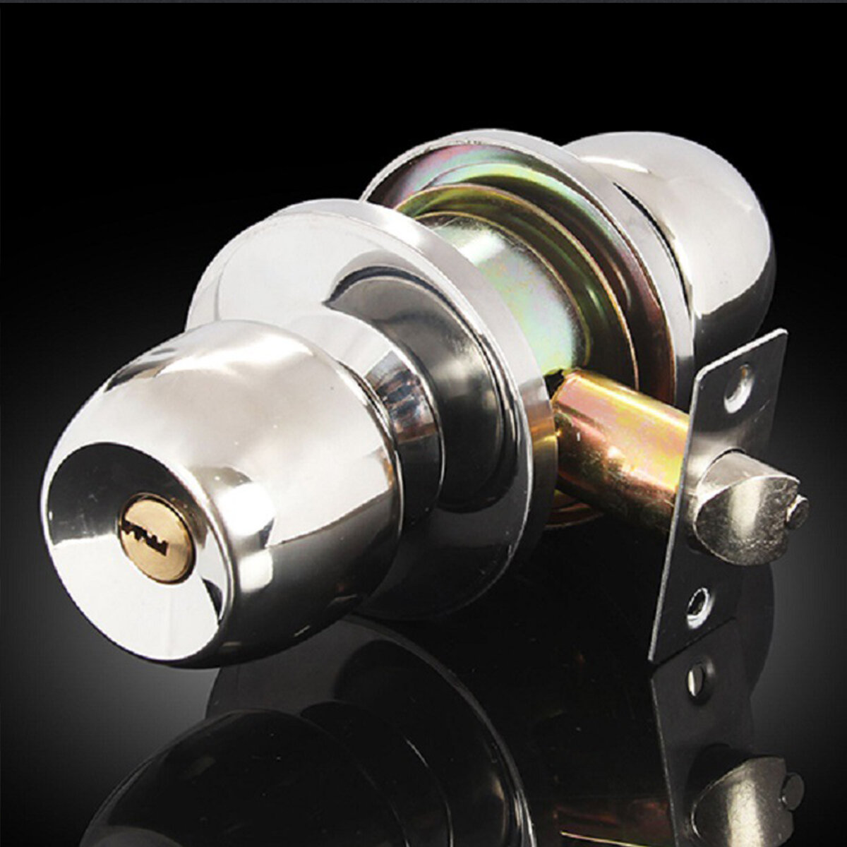Boutons de porte ronds en acier inoxydable Entree de verrouillage d’entree de passage de confidentialite avec 3 cles – Entraxe 60 mm