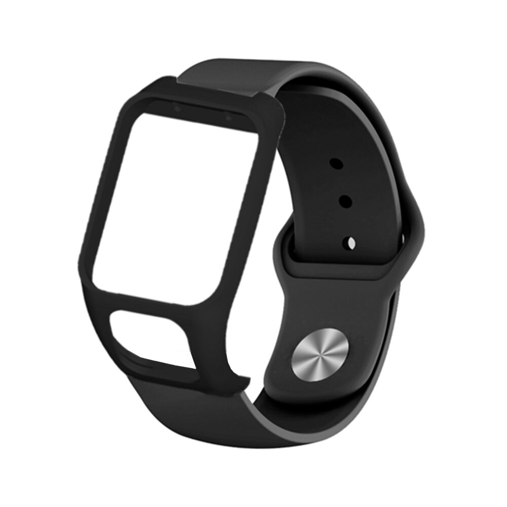 Bracelet de montre en silicone Montre Bande Protecteur d’ecran pour TOMTOM Runner3 / 2 TOMTOM Adventurer – Noir