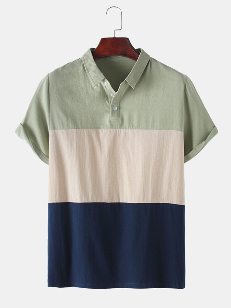 Description:Fit Type:Regular FitMaterial:CottonNeckline:LapelPattern Type:Color BlockScene:Leisure,Home,Sport,CasualSeason:SummerSize:XXL,L,XL,S,MSleeve:Short SleeveStyle:Sport,Casual