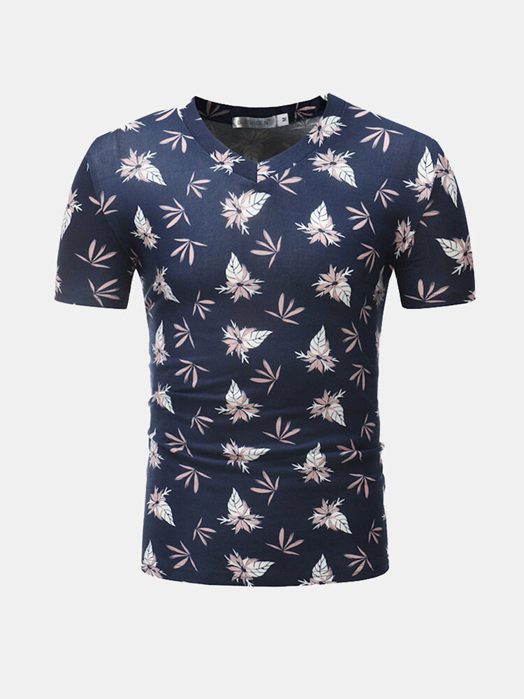 Breathable Printed Summer Casual T Shirts – 3XL Navy