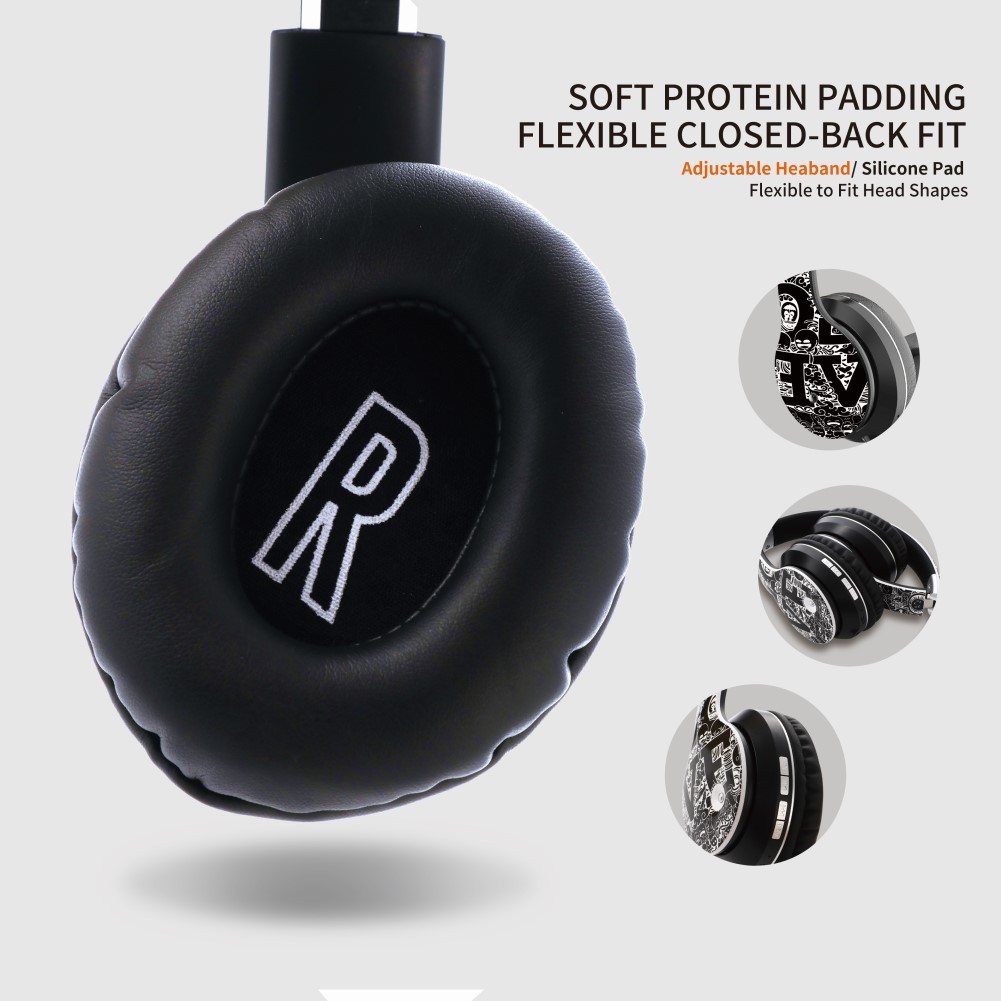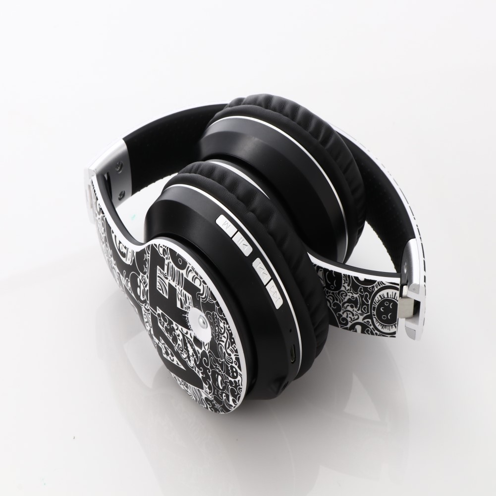 BT Headset Graffiti Pattern Head-mounted Wireless Bluetooth Headphone Universal for PC and Phone Plug-in Card Foldable black gold