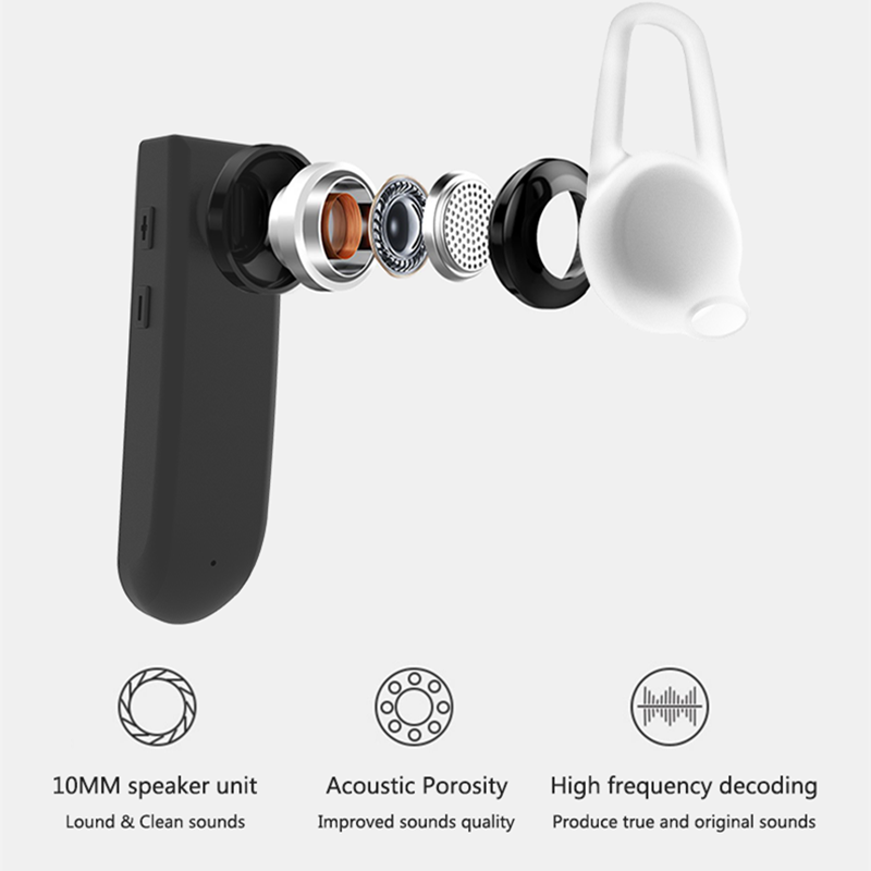 BYZ B67 crochet d’oreille bluetooth 5.0 ecouteur HiFi basse stereo sans fil casque d’affaires longue duree veille casque unique – Noir