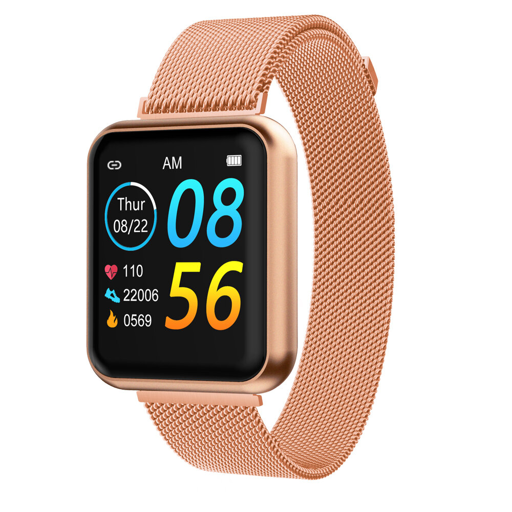 [Cadeau gratuit] Bakeey P90 1.3 pouces plein ecran tactile bracelet oxygene sanguin moniteur de frequence cardiaque affichage meteo montre intelligente – Noir