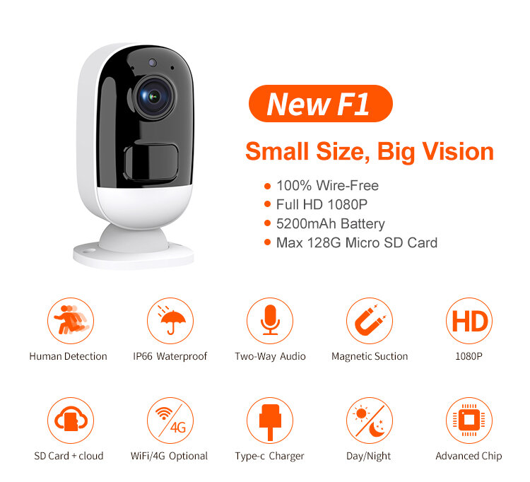 Camera de surveillance solaire F1 3MP basse puissance Batterie Kit de camera avec kit de surveillance sans fil pour panneau solaire – F1