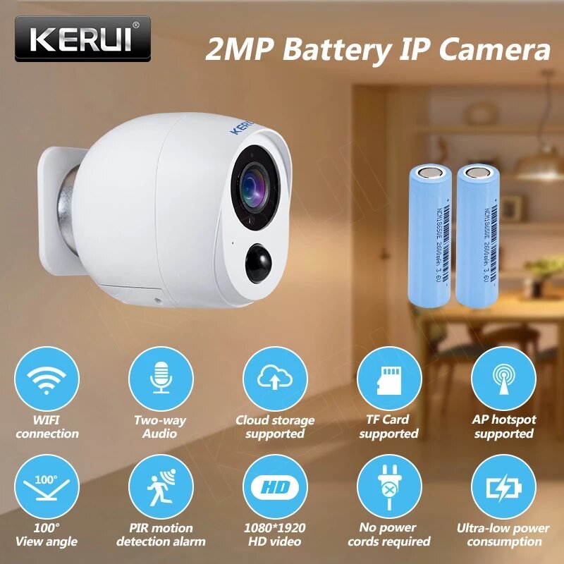 Camera IP WiFi KERUI 2MP Batterie Moniteur de securite de Surveillance Vision nocturne AP CCTV PIR Alarme Audio Stockage en nuage