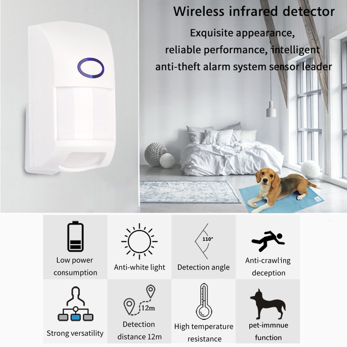 -Alarme de detection de rampement : la technologie de detection de miroir reflechissant, surmonte efficacement les defauts des detecteurs traditionnels qui n'a aucun avertissement de se faufiler et de ramper.