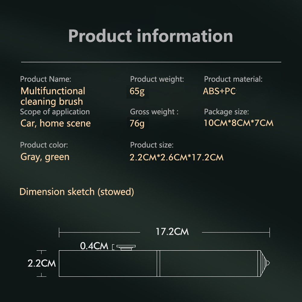 Encrypted brush: suitable for various occasions, powerful cleaning without hurting the paint surface and interior. Easy to clean: When parking and waiting, you can brush it by pushing it away, and easy to clean is not limited. Deep cleaning, leaving no stains: Use the brush end with a detergent for deep cleaning. Be prepared for broken windows and be prepared: When the door cannot be opened, breaking the window glass is one of the fastest ways to escape. Size: 2.2cm x 2.6cm x 17.2cm.