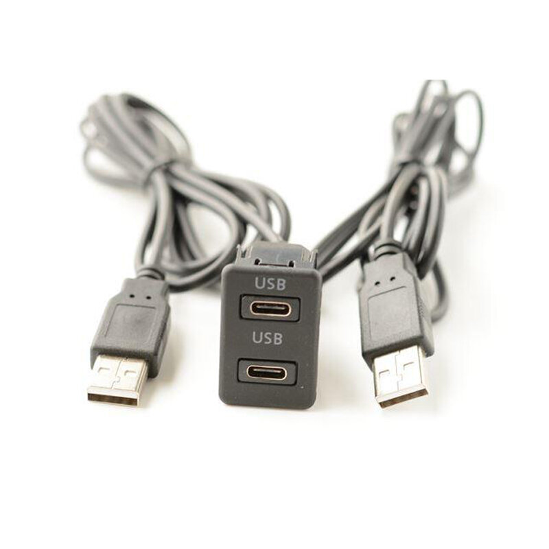 Car Universal Modified Dual Type-C USB Extension Cable Charging Interface Audio Input Extended Socket
