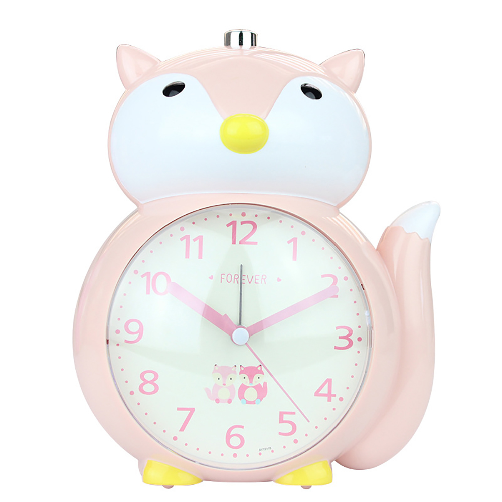 Cartoon Animal Shape Alarm Clock Kids Snooze Function Silent Battery Operated for Bedroom Bedside Pink