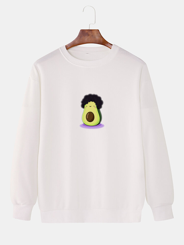 Cartoon Avocado Cute Print Mens Cotton Long Sleeve Casual Sweatshirts – Black M
