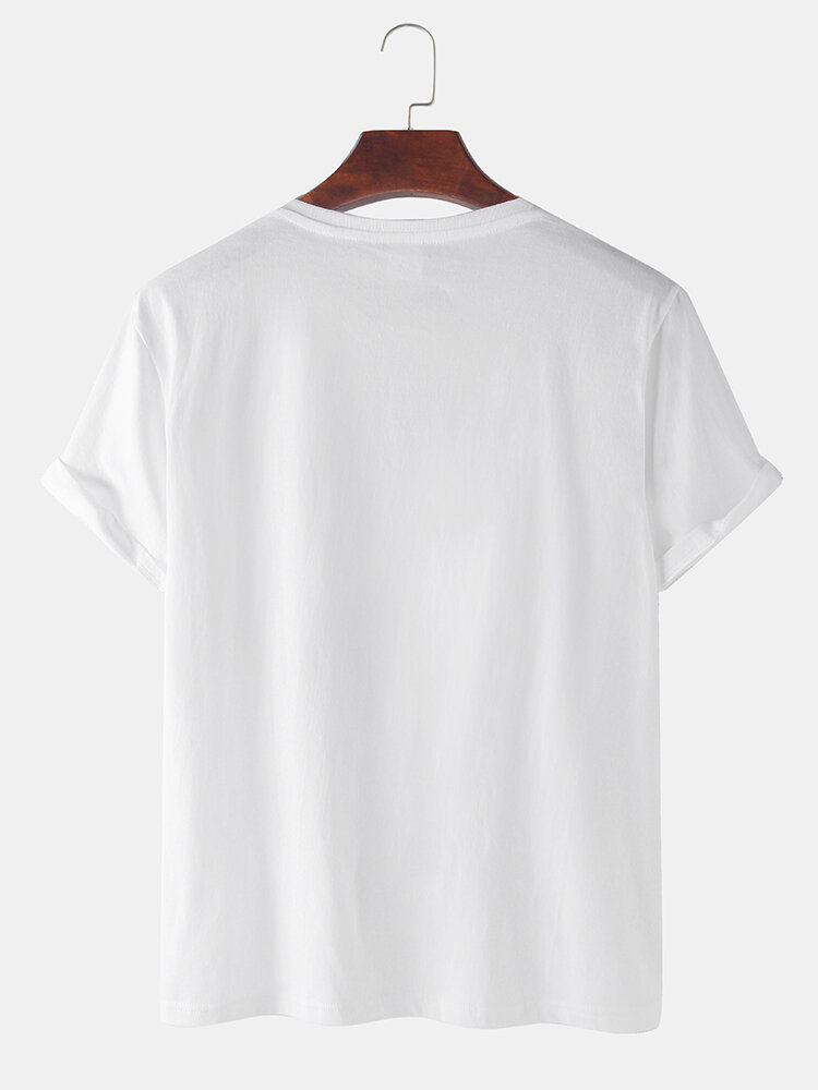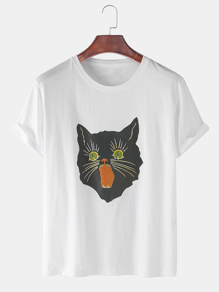 Cartoon Black Cat Print Loose Round Neck Short Sleeve Cotton T-Shirts – White M