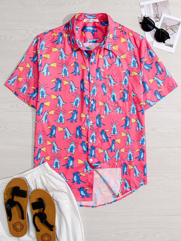 Brand:ChArmkpRDecoration:Pocket,ButtonFit Type:Regular FitMaterial:PolyesterNeckline:LapelPattern Type:CartoonScene:Leisure,Beach,CasualSeason:Spring,SummerSize:XXL,L,XXXL,XL,MSleeve:Short SleeveStyle:Casual,CartoonThickness:Regular