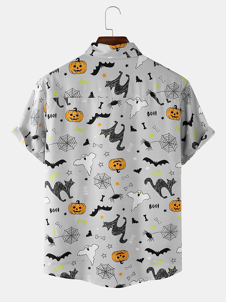 Cartoon Print Turn Down Collar Short Sleeve Shirts – Blue M