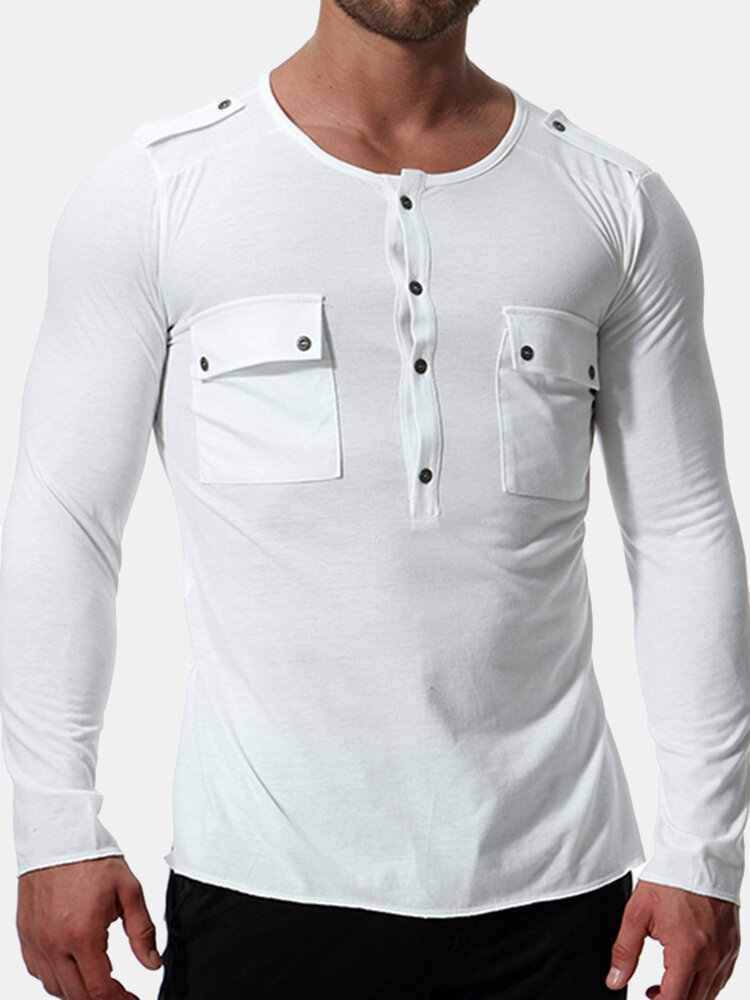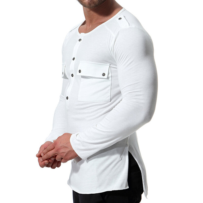 Casual Autumn Cotton Double Pockets T-shirts for Men – 2XL white