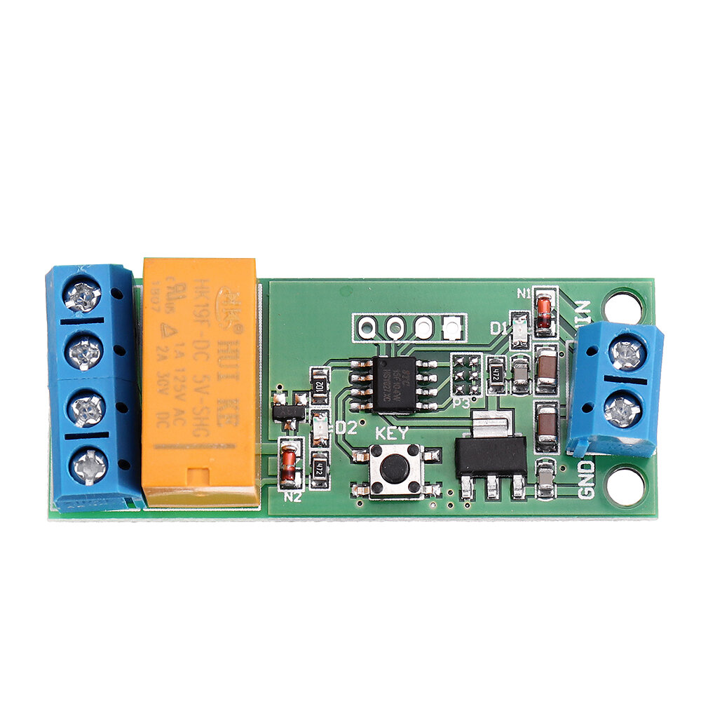 Specifications: Operating voltage: DC 5-12V(5V 6V 9V 12V)Operating current: 5V,forward 4ma, reverse: 36ma;12V, Forward 6ma, reverse: 44ma;Load voltage: DC 1-48V OR AC 85-265VLoad current: Maximum 2AForward maximum time: 5000 seconds, 0.1 seconds stepReverse maximum time: 5000 seconds, 0.1 seconds stepBy "Time multiple selection" setting,The maximum delay of up to 40,000 seconds.(short-circuited pad)Size: 54 x 22 x 15 mmHow to Use: VIN connected to the positive of power supply , GND connected to the negative of power supply;P+ connected to the positive of Motor power supply, P- connected to the negative of Motor power supply;M + M- are connected to both ends of the motor After power, D1 flashes 3 times, D2 off, M+ output positive, M- output negative, motor forward; after a time delay T1, D2 on, M+ output negative, M- output positive, motor reversal; after a time delay T2, D2 off, M+ output positive, M- output negativ, motor forward;and so on. T1: indicates motor Forward delay time, default 0.1-5000 seconds adjustable (step 0.1 seconds)T2: indicates motor Reverse delay time, default 0.1-5000 seconds adjustable (step 0.1 seconds) By "Time multiple selection" setting,The maximum delay of up to 40,000 seconds How to Set Up: