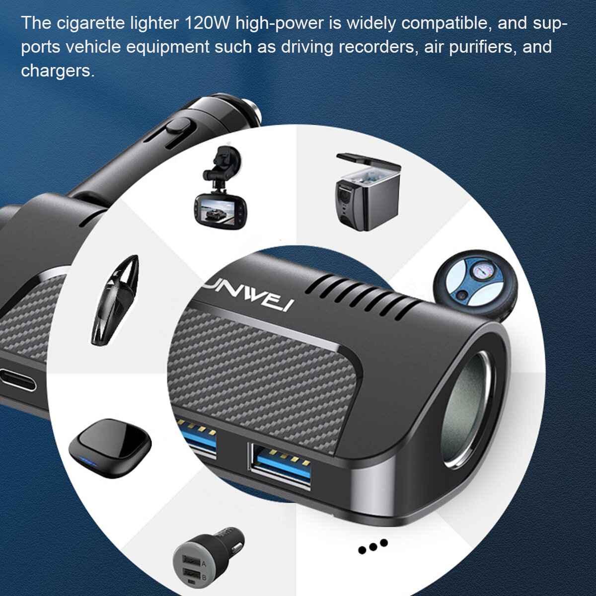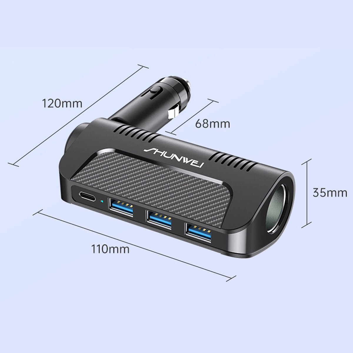 Chargeur rapide de voiture Chargeur de voiture de charge rapide Allume-cigare de voiture One avec trois prises Chargeur de voiture multifonction Dc12-24v Universel