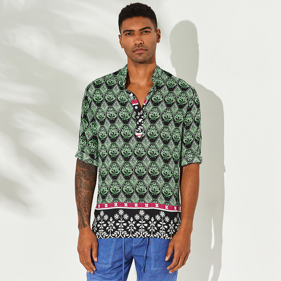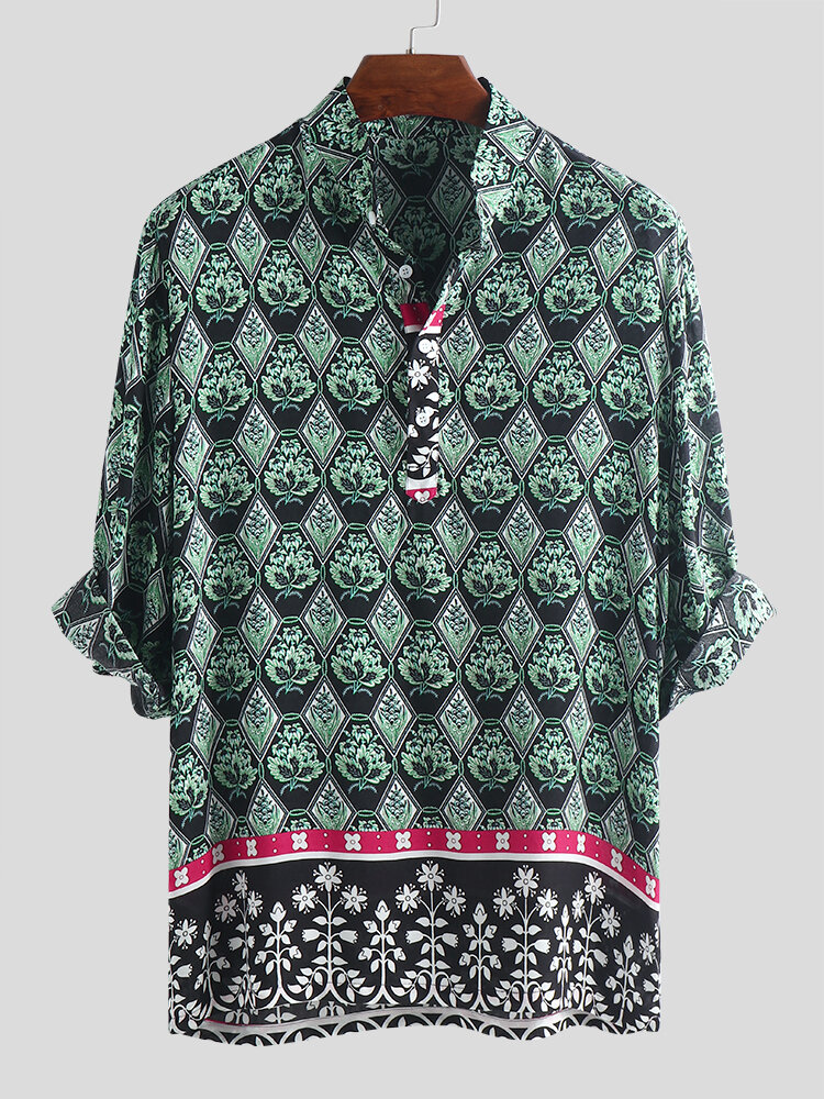 Charmkpr Men Ethnic Pattern Printed Half Sleeve Henley Shirt – XL Blue