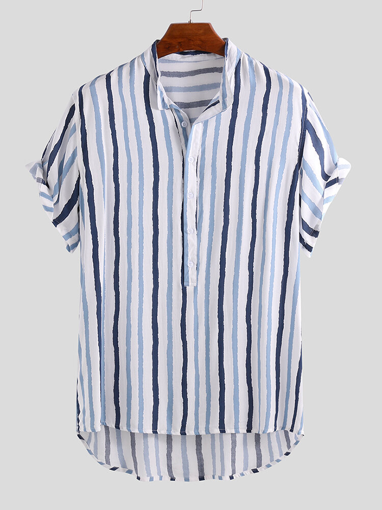: CharmkprSleeve Length: Short SleeveItem Type: ShirtsPattern Type: FloralGender: MenFit Type: LooseStyle: Casual, Hawaiian Style, Home, LeisureThickness: ThinCollar: Stand CollarSeason: Spring, SummerMaterial: 100% RayonOccasion: Leisure, Homedress, Beach, Traveling