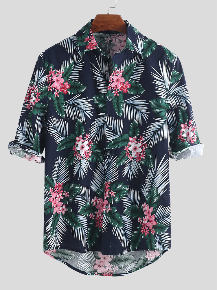 ChArmkpR Men Tropical Plants Printed Hawaiian Casual Shirts – 2XL Dark Blue