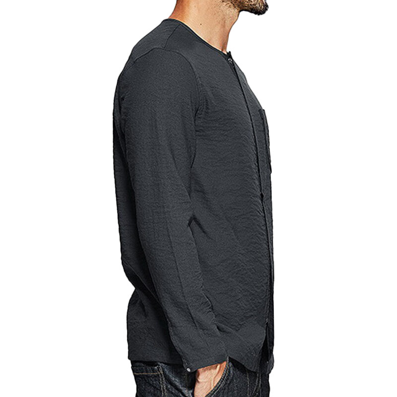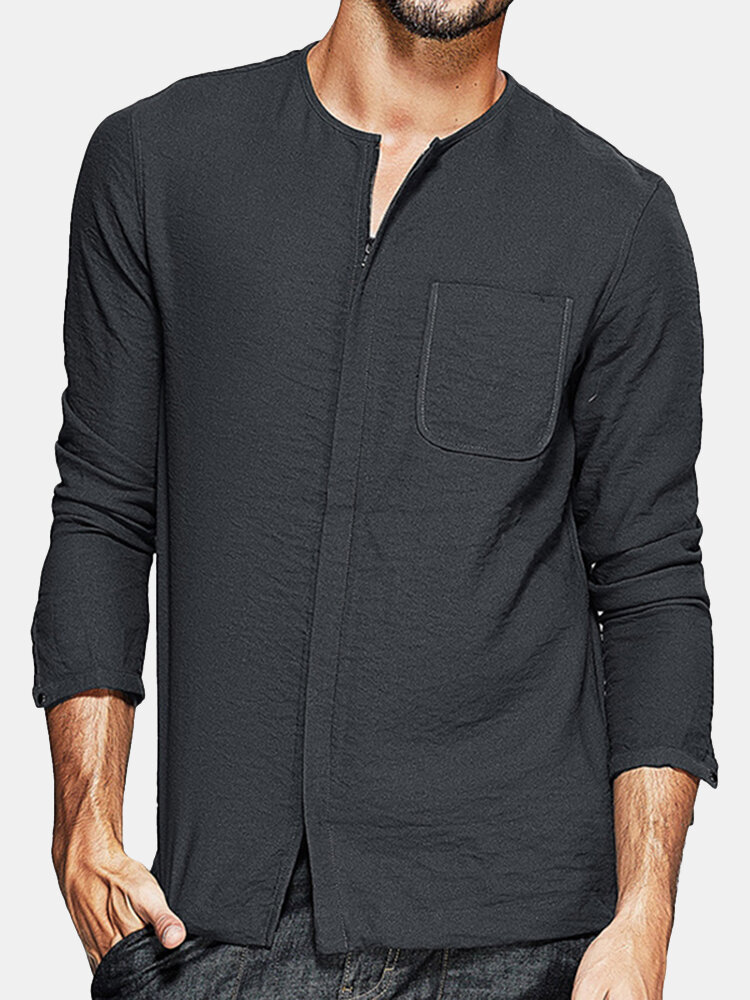 Charmkpr Mens Zipper Solid Color O Neck Pocket Casual Shirts – 2XL Dark Grey