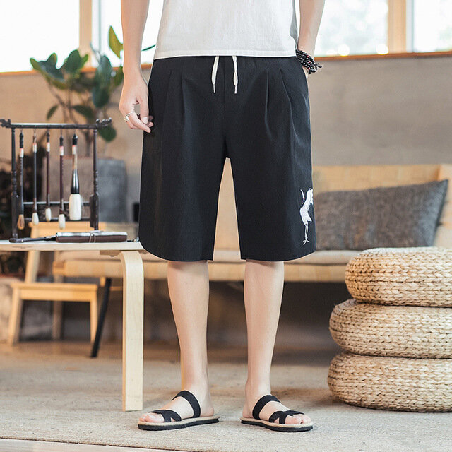 Chinese Style Embroidery Linen Cotton Shorts – Black