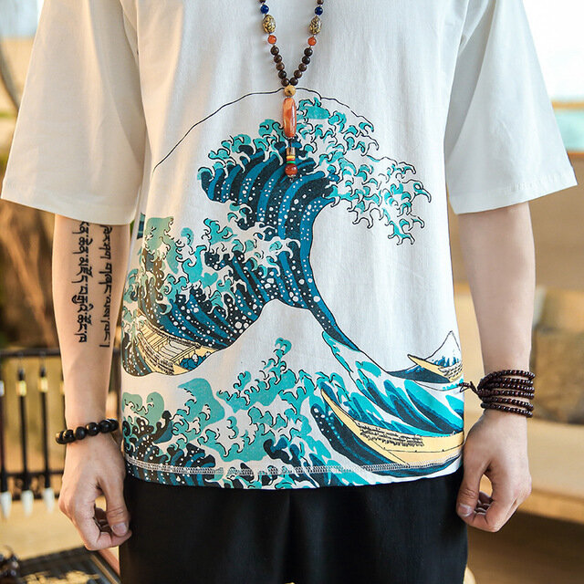 Chinese Style Printing Short-sleeved T-shirts – 4XL White
