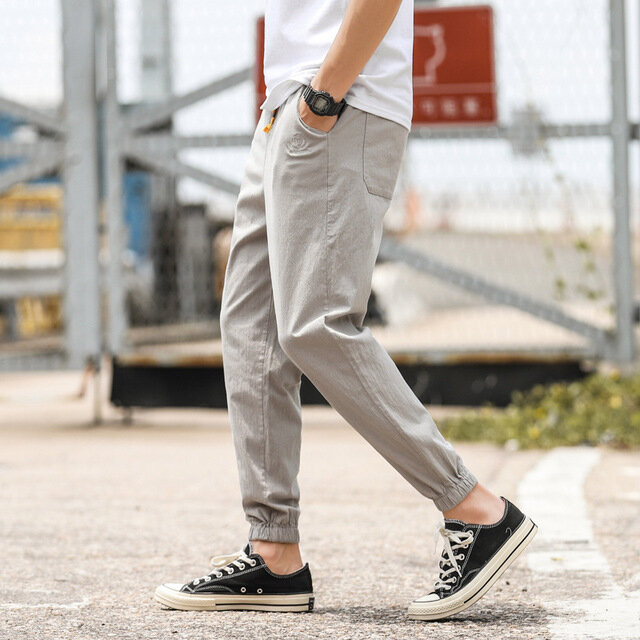 Chinese Style Pure Cotton Nine Pants Men’s Trend Solid Color Casual Pants Men’s Large Size Cotton And Linen Pants Pants Linen Pants – 3XL Dark Gray