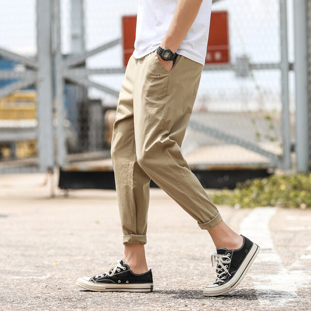 Chinese Style Solid Color Linen Straight Nine Pants Men’s Large Size Casual Trend Feet Men’s Pants Season Pants Men – 3XL Light Gray