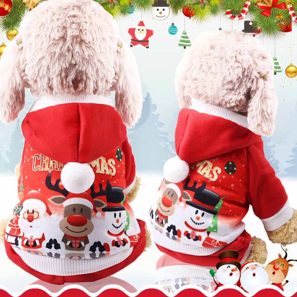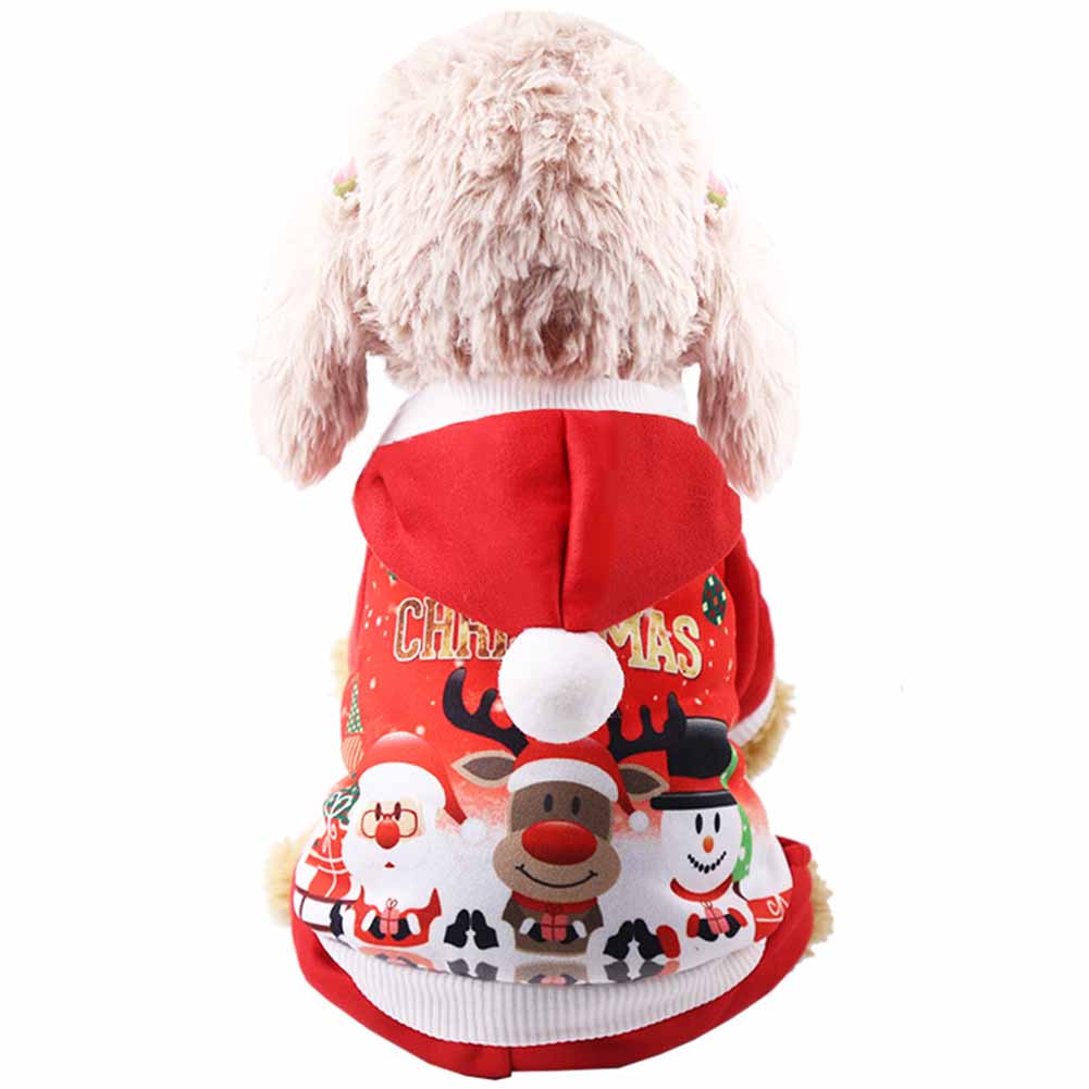 Christmas Pet Dog Clothes Plush Xmas Costume Hoodie Jacket for Small Medium Red_M back length 30cm