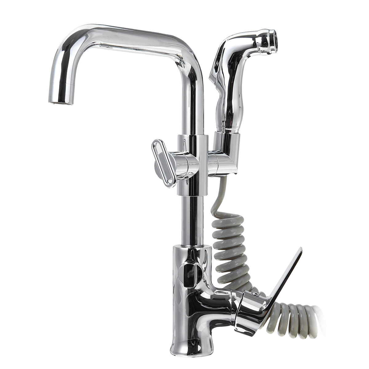 Chrome Kitchen Faucet Dual Sprayer Swivel Spout Spring Pull Out Spray Mixer Tap