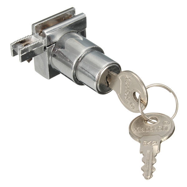 Description: Chrome Zinc Alloy Display Case Showcase Hinged Glass Cabinet Door Lock with 2 Keys Features:  1. Adds style and security to stereo cabinets and showcases with glass doors.