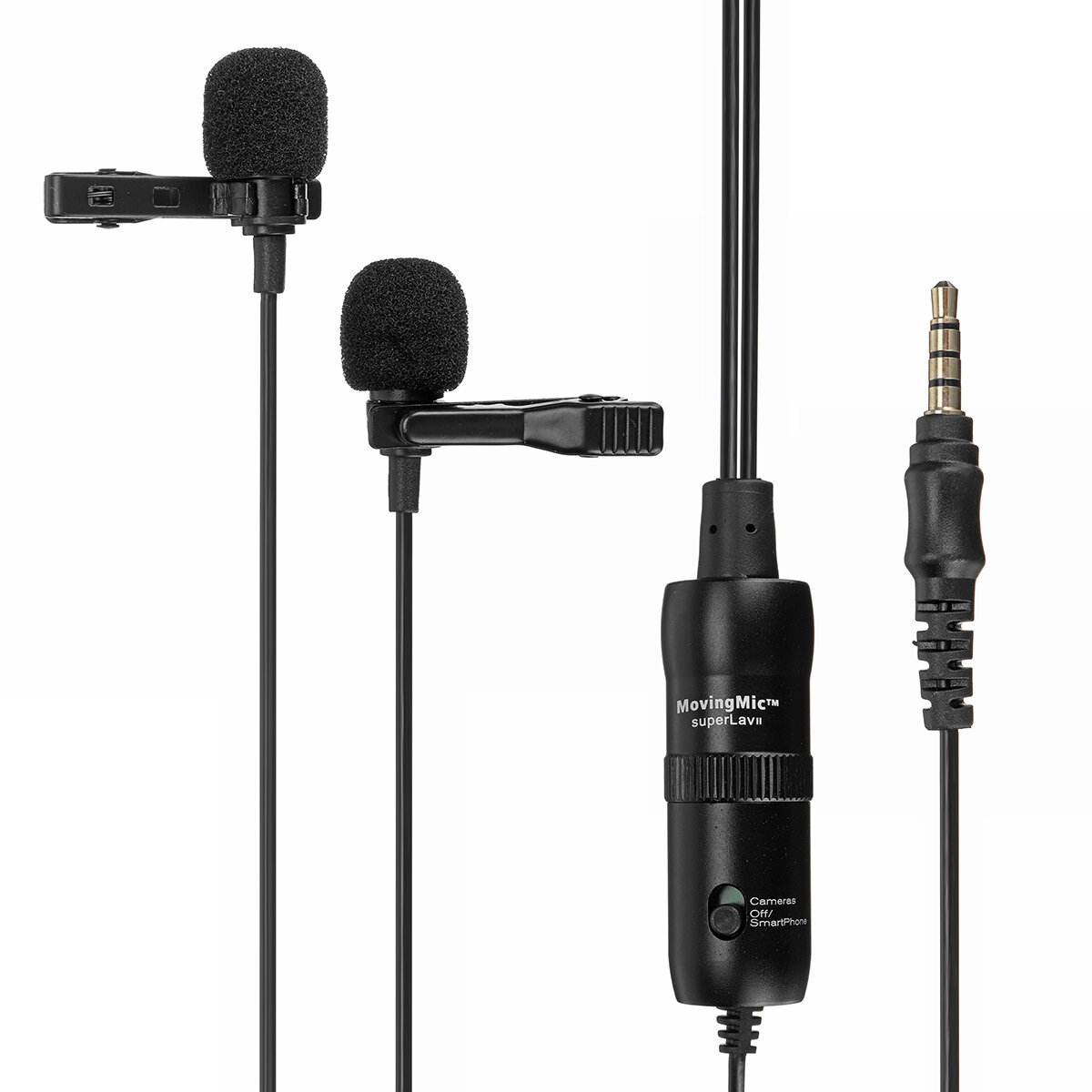 . Fonctionnalites: -C'est un microphone e double tete cravate omnidirectionnel, coneu pour les smartphones, les reflex numeriques, les camescopes, les enregistreurs audio PC, etc., il est parfait pour une utilisation video. -Clip-on Mic: Lapel clip-on dual head microphone, designed for interviews, presentations, podcasts, webcasts and more situation needed to be recorded. De plus, le ceble integre de 6 m avec prise doree de 3,5 mm e 4 peles n'est qu'une deuxieme chose e connecter e vos smartphones et e la plupart de vos appareils photo. -Super sound for presentations and video audio recorders Lavalier Clip-on Omnidirectional -Condenser Microphone is designed for video use and provides clear and accurate voice reproduction. -Conception de style newscaster fournit un motif de ramassage omnidirectionnel efficace. Il s'agit du meilleur rapport performances / prix disponible pour tous vos besoins video. -Clip-On Mic for Smartphones, DSLR, Camcorders, Audio recorders, PC etc. - Microphone e condensateur directionnel Omni.Un condensateur de haute qualite est ideal pour une utilisation video Pour smartphone Switch off the microphone. Slide the ON/OFF up to OFF/Smartphone. Le courant est coupe. For DSLR, Camcorders, Audio recorders, PC ect Allumez le microphone. Faites glisser ON / OFF sur ON. Specification: Type de transducteur: Condenseur e electret Polar Pattern: Omni-directional Gamme de frequences: 65 Hz ~ 18 KHz Noise: =74dB SPL Sensibilite: -30 dB +/- 3 dB / 0 dB = 1 V / Pa, 1 kHz Output Connection: 3.5mm (1/8ee) 4-pole gold plug Batterie Type: pile bouton (non incluse) Audio Cable: 6m Contenu du colis: 1 x micro double tete 2 x foam windscreen 2 x pince e cravate