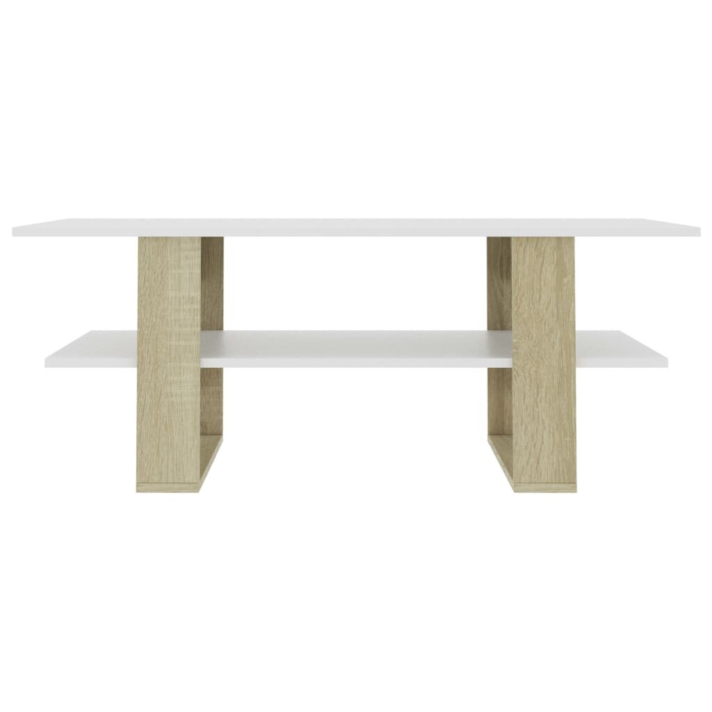 Coffee Table White and Sonoma Oak 43.3″x21.6″x16.5″ Chipboard