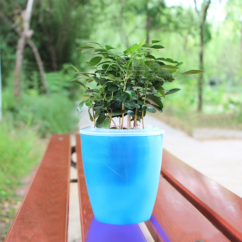 Colorful Self Watering Round Planter Flower Pot Home Garden Decor Professional Green Plant Vase Translucent blue_Big (M7)