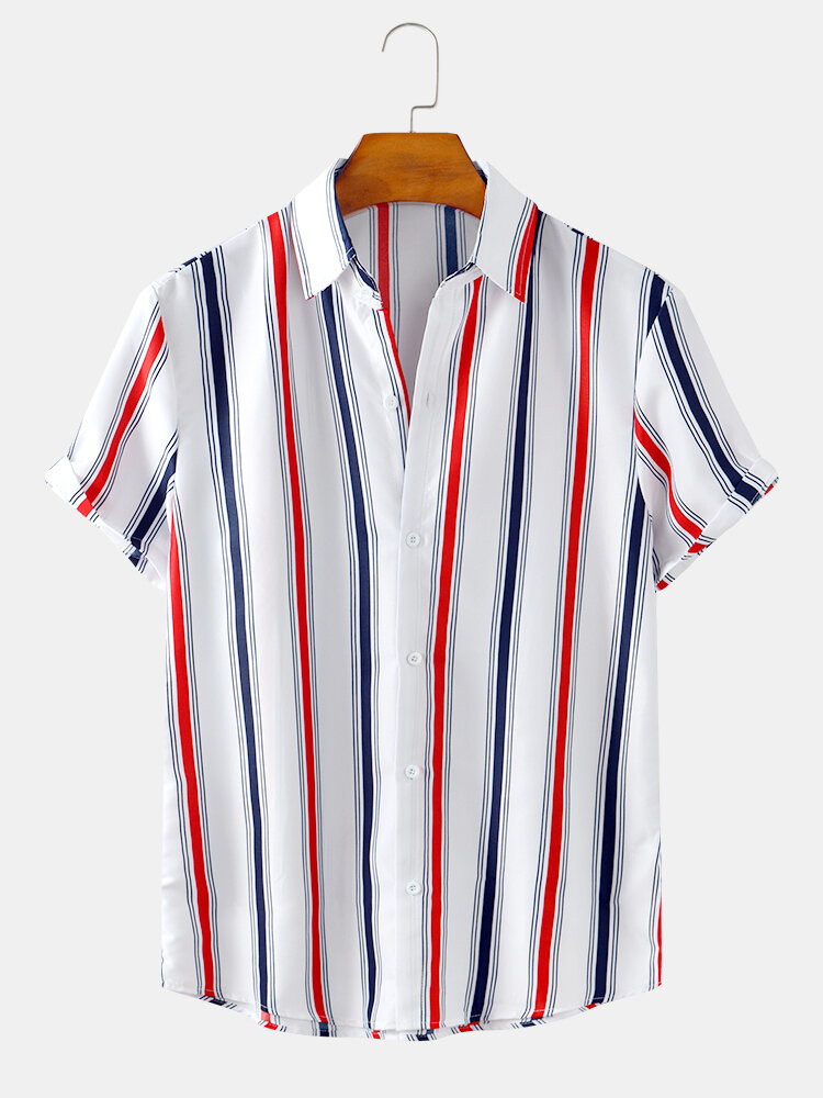 Pattern Type:StripedScene:Leisure,Home,Beach,CasualSeason:SummerSize:L,S,XL,MSleeve:Short SleeveStyle:Casual,Hawaii Style