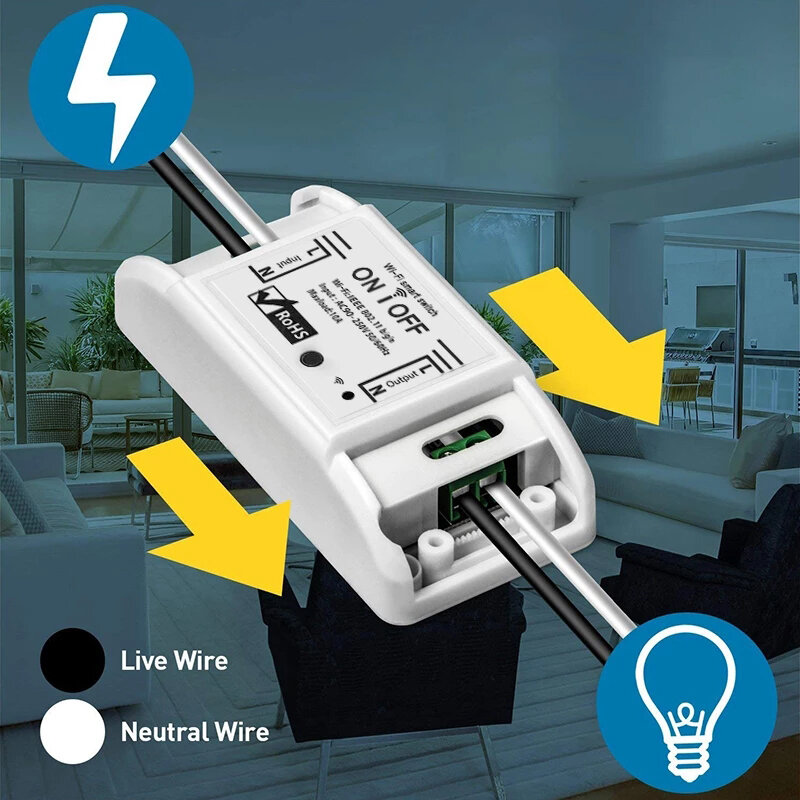 Commutateur WiFi Tuya Commutateur d’eclairage sans fil intelligent Telecommande Module de bricolage universel pour solution de domotique intelligente fonctionne avec Smart Life Prise en charge de l’application Tuya Alexa Google Home – 1 pc