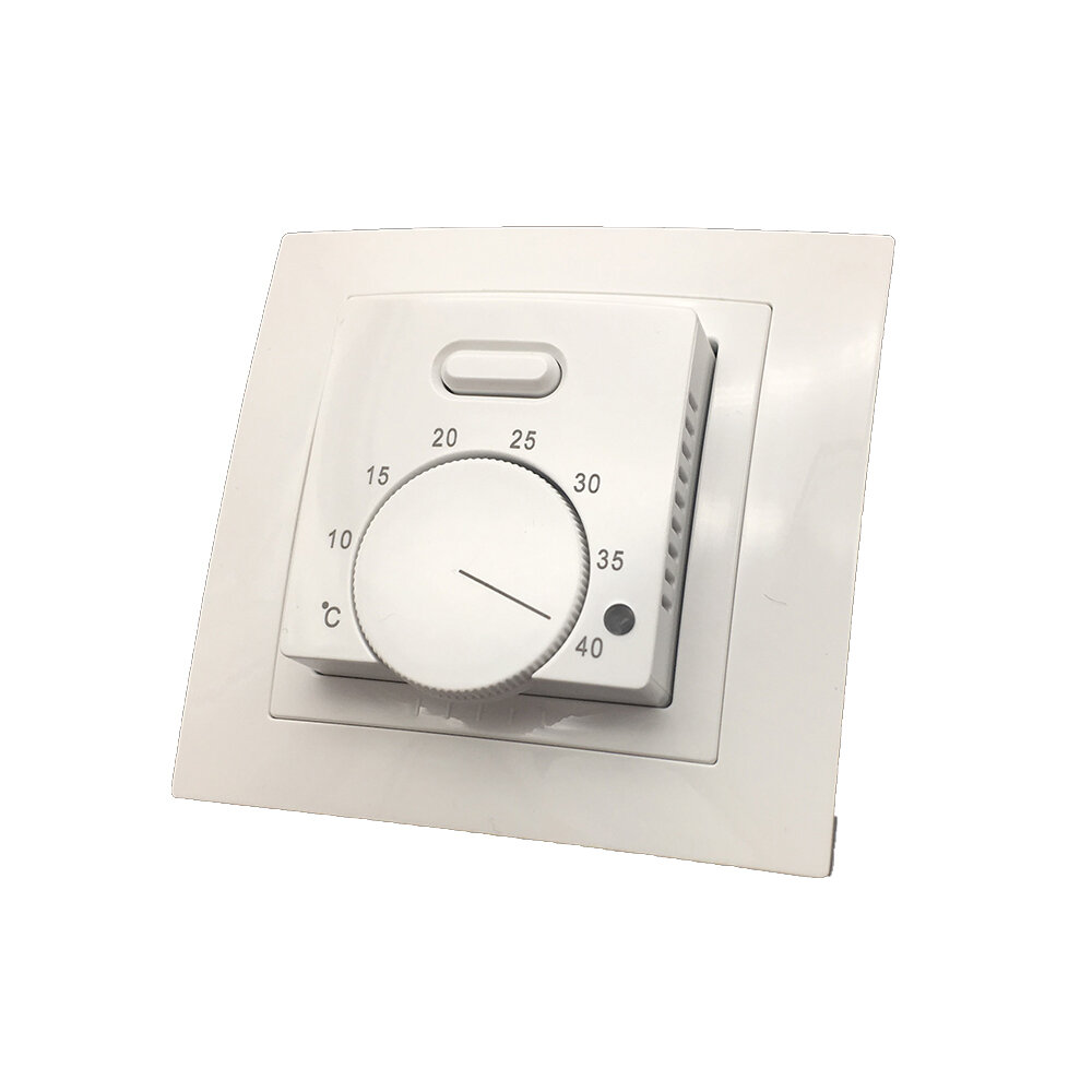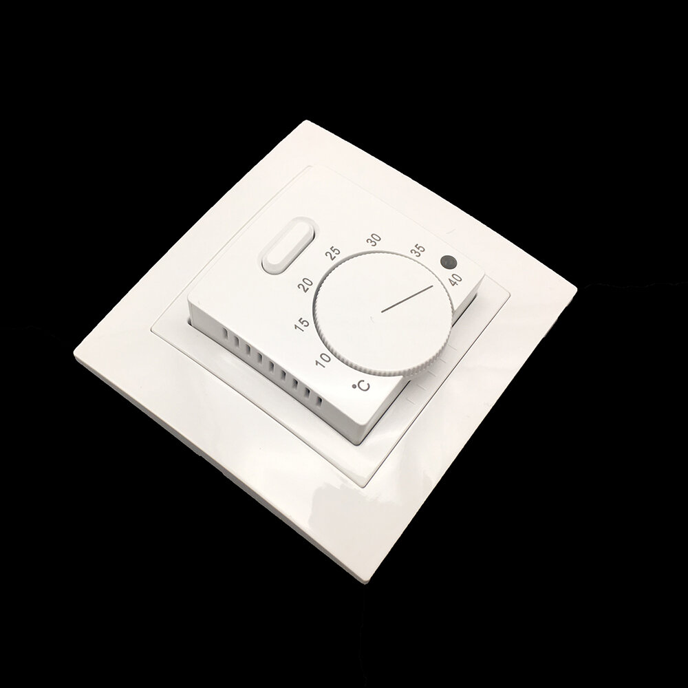 . Caracteristique Contreleur de temperature AC220 du thermostat d'ambiance de chauffage au sol ME87 avec capteur de 3 metres Installer sur une surface murale interieure Plage de temperature : +5/+40 degres Celsius Utilise dans le systeme de contrele automatique de chauffage des locaux Le voyant est allume pendant le chauffage Repondre aux exigences de securite, d'economie d'energie et de confort Le panneau a une echelle de temperature , un cadran , un interrupteur . En raison d'une operation simple, la fiabilite e long terme est bonne, plus adaptee aux enfants et aux personnes egees, abordable et durable. specification Tension : 220~240VAC 50/60Hz Courant de charge : 16A Consommation electrique :