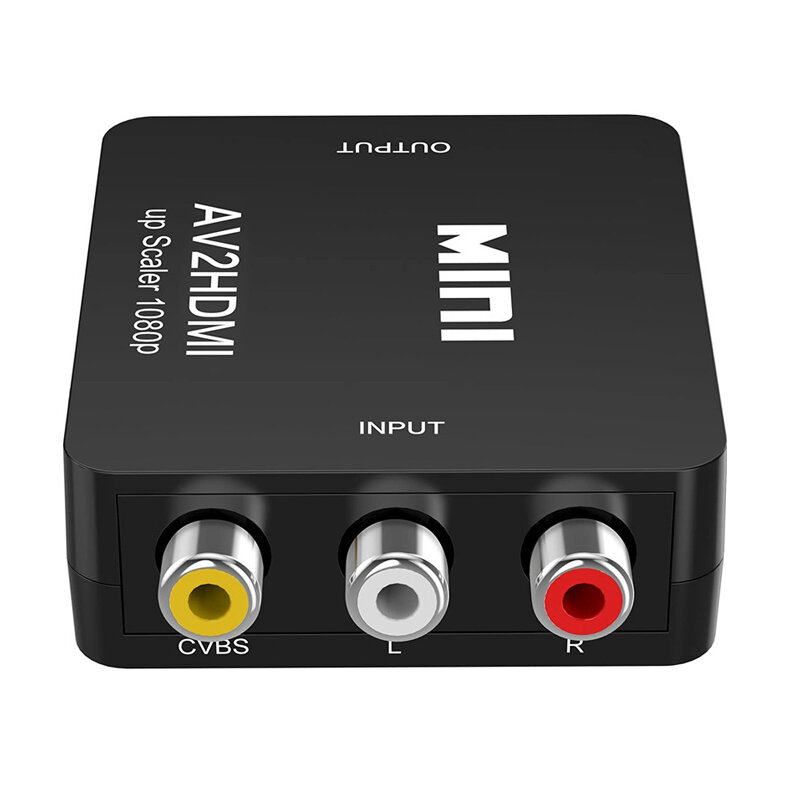 . Caracteristiques: Convertit l'entree composite analogique en sortie HDMI 1080p (60 HZ), affichee sur un televiseur HD / moniteur 1080p (60 HZ). Prise en charge de la sortie HDMI 1080p ou 720p. Fournit un traitement avance du signal avec une grande precision, des couleurs, des resolutions et des details. Large compatibilite: Fournit un traitement du signal, des couleurs, une resolution et des details precis. Prise en charge des formats de source TV standard PAL, NTSC3.58, NTSC4.43, SECAM, PAL / M, PAL / N tels que PS1, PS2, SFC, PCE, SS, Xbox et N64. Installation facile, convertisseur RCA vers HDMI, aucune installation de pilote requise, portable, flexible, plug and play. Profitez de la sortie video HD: la puce de traitement numerique Art fournira le traitement du signal avec une grande precision, des couleurs vives et des resolutions ultra-claires. Caracteristiques: Ports d'entree: 3 x RCA (jaune, blanc, rouge), alimentation USB Port de sortie: 1 x HDMI (standard) Compatible NTSC / PAL Entree composite: PAL, NTSC3.58, NTSC4.43, SECAM, PAL / M, PAL / N Sortie HDMI: 1080p / 60Hz, 720p / 60Hz Couleur: noir, blanc Dimensions (mm): 66 (P) x55 (L) x20 (H) Poids: 40g Alimentation: port USB Re : Veuillez connecter votre ceble d'alimentation (inclus) pour que ce convertisseur video fonctionne parfaitement. Assurez-vous que votre appareil dispose d'un connecteur HDMI. Transfert de signal video uniquement, ne peut pas ameliorer la qualite video. Emballage inclus: 1 x convertisseur AV vers HDMI 1 x ceble USB 1 x manuel de l'utilisateur