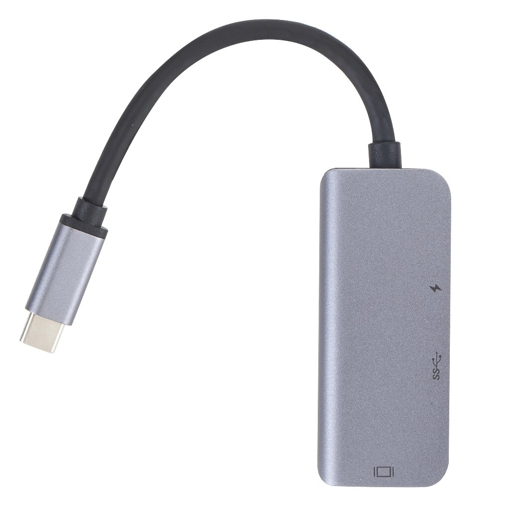 Convertisseur HUB Portable 3 en 1 USB Type-C 4K HDMI 87W Adaptateur USB-C 5Gbps USB3.0 Gris