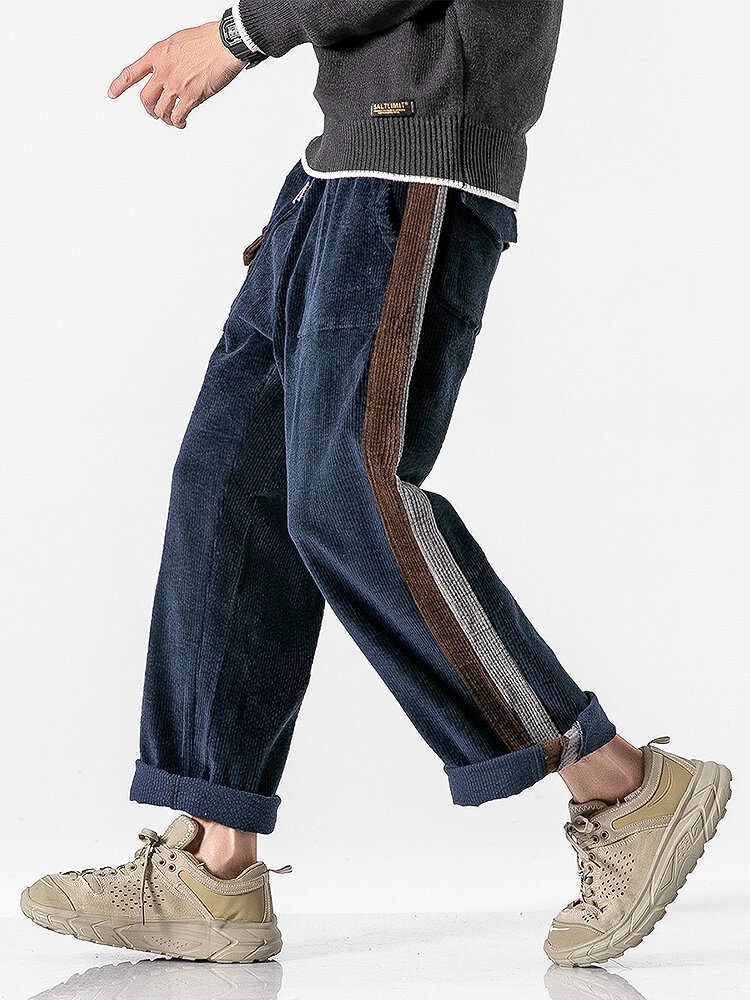 Corduroy Mens Poclet Side Stripe Drawstring Casual Straight Leg Pants – Navy S