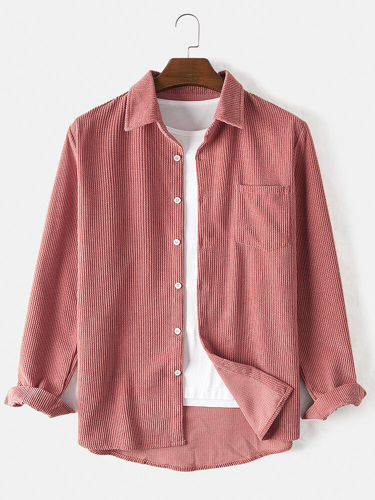 Corduroy Solid Color Long Sleeve Casual Shirts With Pocket – Yellow 2XL