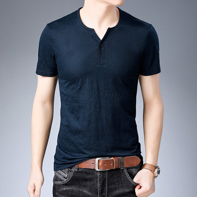 Cotton And Linen New Season Short-sleeved T-shirt Bottoming Shirt Trend Half-sleeved Clothes V-neck Casual Short-sleeved Men’s Clothing – L Black