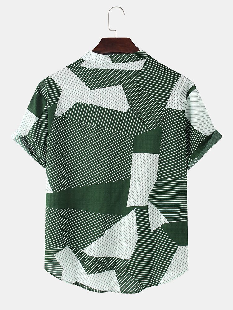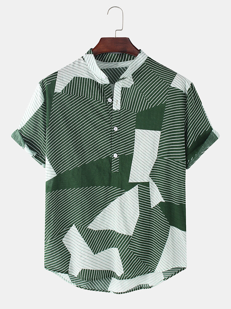 Description:Fit Type:Regular FitMaterial:CottonNeckline:Stand CollarPattern Type:StripedScene:Leisure,Home,CasualSeason:SummerSize:XXXL,XXL,L,XL,MSleeve:Short SleeveStyle:Casual