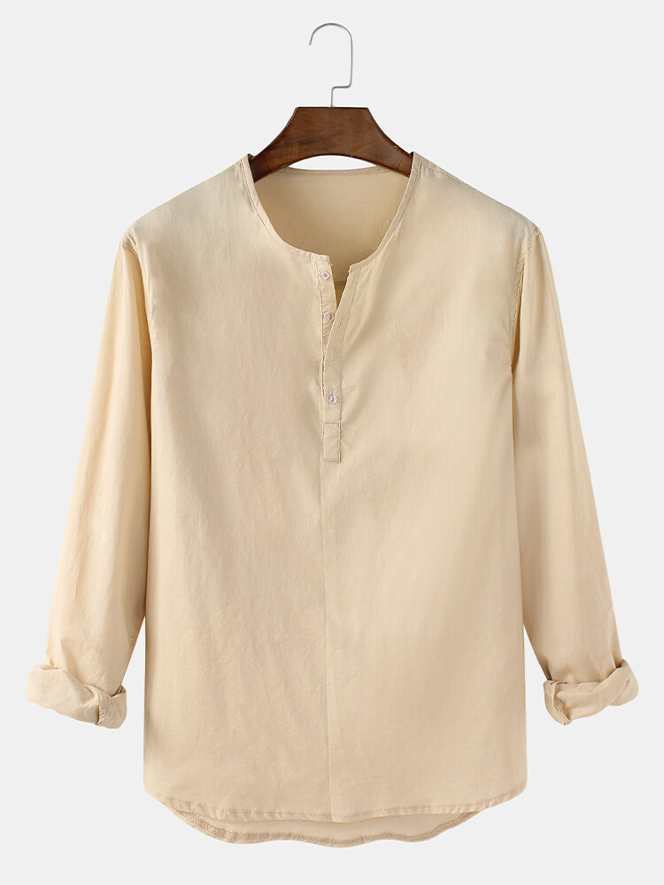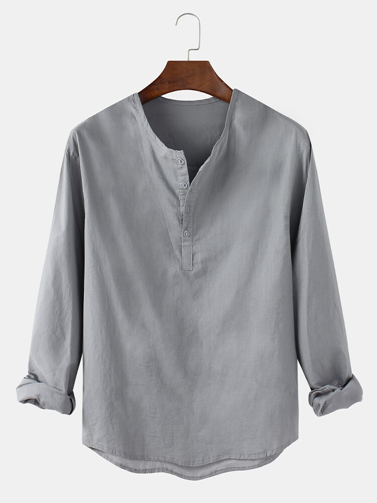 Description:Decoration:ButtonFit Type:Regular FitMaterial:CottonNeckline:Henley CollarPattern Type:SolidScene:Leisure,Home,CasualSeason:Spring,Summer,AutumnSize:L,S,XL,MSleeve:Long Sleeve,Half SleeveStyle:Casual