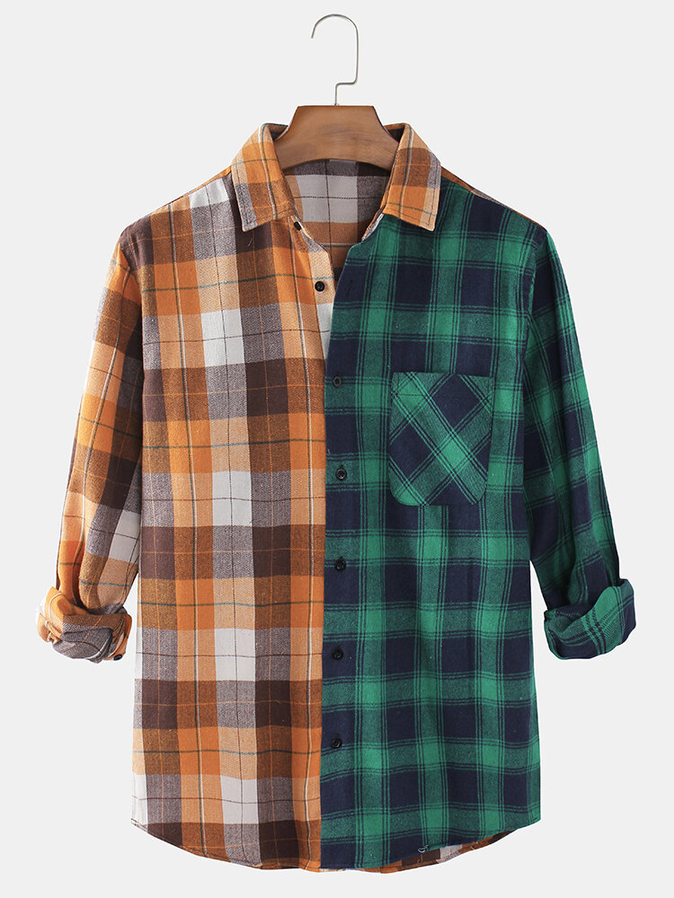 Description:Decoration:PocketFit Type:Regular FitMaterial:CottonNeckline:LapelPattern Type:Plaid,PatchworkScene:Leisure,Home,CasualSeason:Spring,AutumnSize:XXL,L,S,XL,MSleeve:Long SleeveStyle:Casual