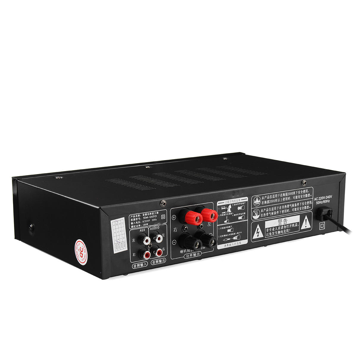 . Caracteristiques: Tension nominale: 220V RMS: 100W + 100W MAX Puissance: 150W + 150W Type d'amplificateur de puissance: amplificateur de puissance HIFI Version Bluetooth: 4.0 Voie vocale: 2 voies vocales Resistance de charge: 4 - 8 ohm Sensibilite d'entree: 550mV Reponse en frequence: 20Hz-20KHz S / N: =80dB Distorsion: