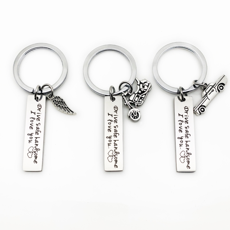 Creative Drive Safe Handsome Words Stainless Steel Keychain Key Rings(Motorcycle)