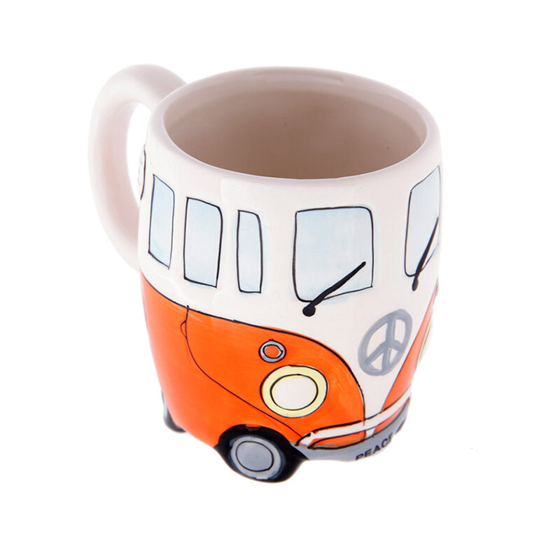 Cartoon Double Bus Mug Funny Hand Painting Retro Ceramic Cup Coffee Milk Tea Cup Drinkware Novetly Gift