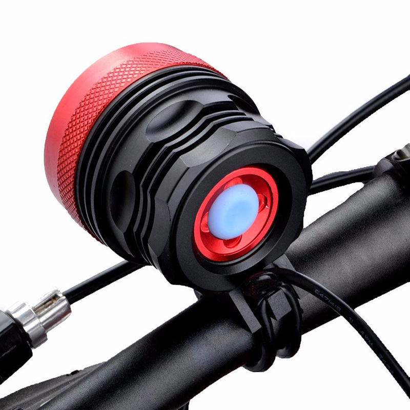 The front light of this LED light set can be either attached to your steering wheel or, along with the included headband; it can be used as a headlamp. Allowing you to wear this powerful LED flashlight conveniently at your head makes this a truly multifunctional flashlight that can be used for countless purposes. Whether you go out for an evening hike, a bike ride after dark, or simply need some extra light while camping – with this CREE light set you are guaranteed to be never again left in the dark.